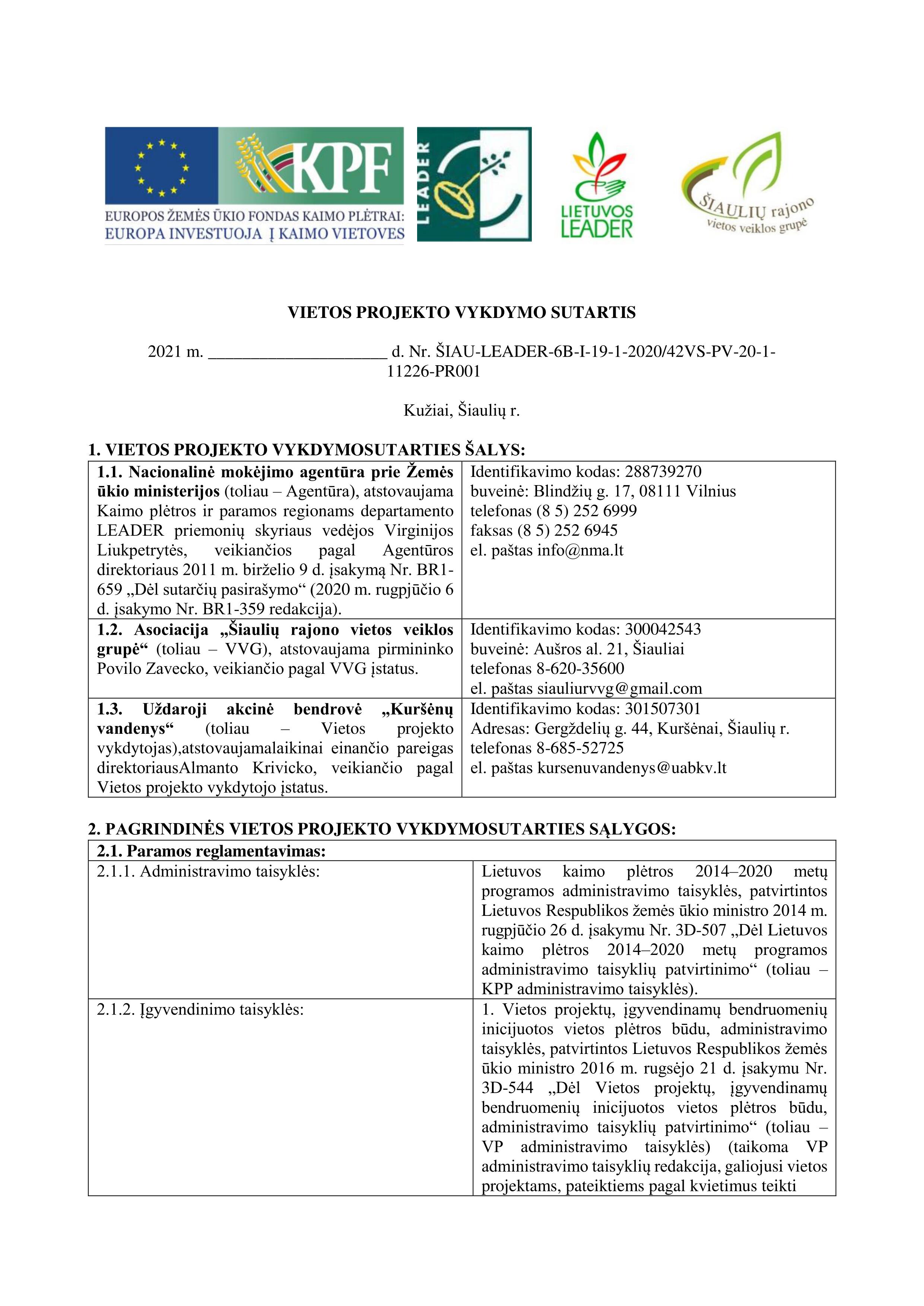 Įgyvendindama Asociacija "Šiaulių rajono vietos veiklos grupė" teritorijos 2015 - 2023 m. vietos plėtros strategiją 2021 m. vasario 24 d. Šiaulių rajono vietos veiklos grupė kvalifikuotu elektroniniu parašu pasirašė 19-ojo kvietimo vietos projekto (Nr. ŠIAU-LEADER-6B-I-19-1-2020/42VS-PV-20-1-11226-PR001) vykdymo sutartį su UAB "Kuršėnų vandenys". UAB "Kuršėnų vandenys" pagal pasirašytą vietos projekto vykdymo sutartį įgyvendins projektą "Nugeležinimo įrenginių statyba Pakapės kaime". Projekto tikslas - pagerinti Pakapės kaimo gyventojams tiekiamo geriamo vandens kokybę, užtikrinti kaimo gyventojams nenutrūkstamą prieinamumą prie kokybiško vandens, įrengiant vandens kokybės gerinimo sistemą ir tokiu būdu efektyviai prisidėti prie Pakapės kaimo atnaujinimo ir darnios plėtros. Šiam tikslui pasiekti, iškelti tokie uždaviniai: