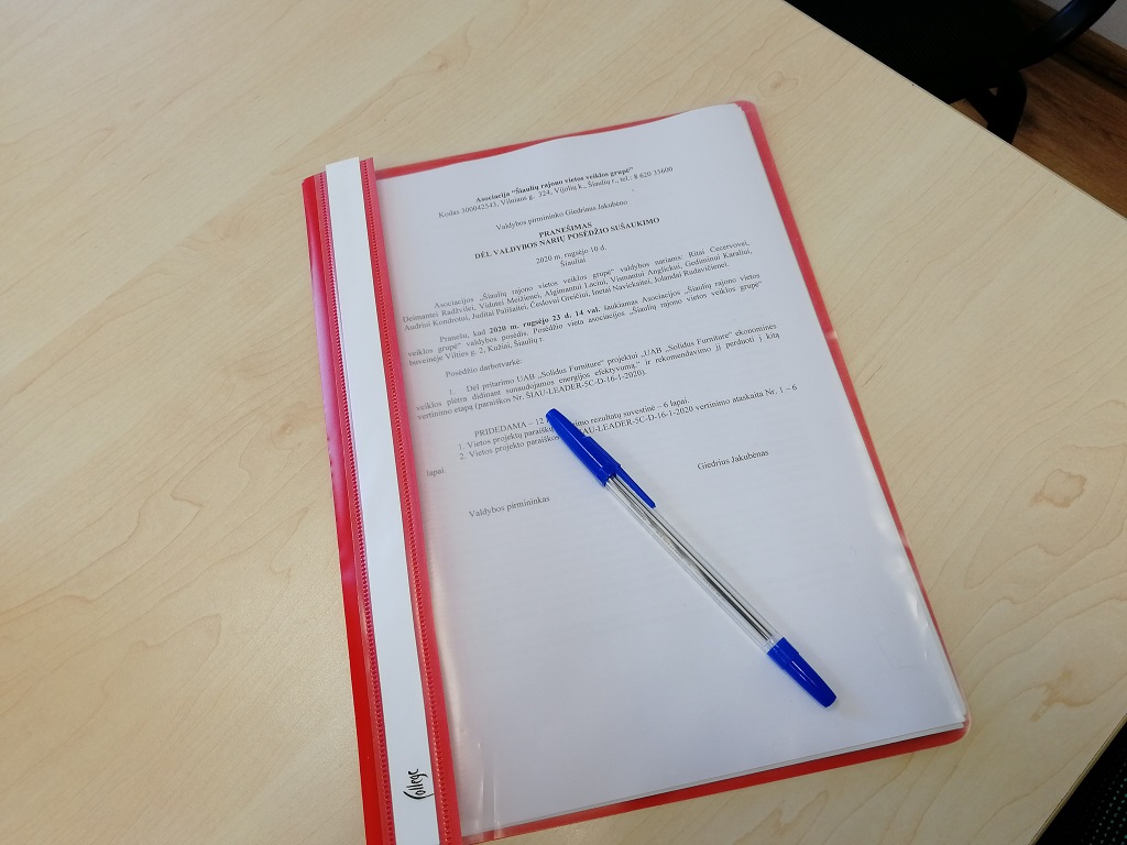 2020 m. rugsėjo 23 d. Šiaulių rajono vietos veiklos grupė organizavo vietos projektų atrankos komiteto posėdį, adresu Vilties g. 2, Kužiai, Šiaulių r. Posėdyje dalyvavo Šiaulių rajono vietos veiklos grupės valdybos (vietos projektų atrankos komiteto) nariai, Šiaulių r. VVG darbuotojai ir pareiškėjas UAB "Solidus Furniture" direktorius Ignas Daukša.