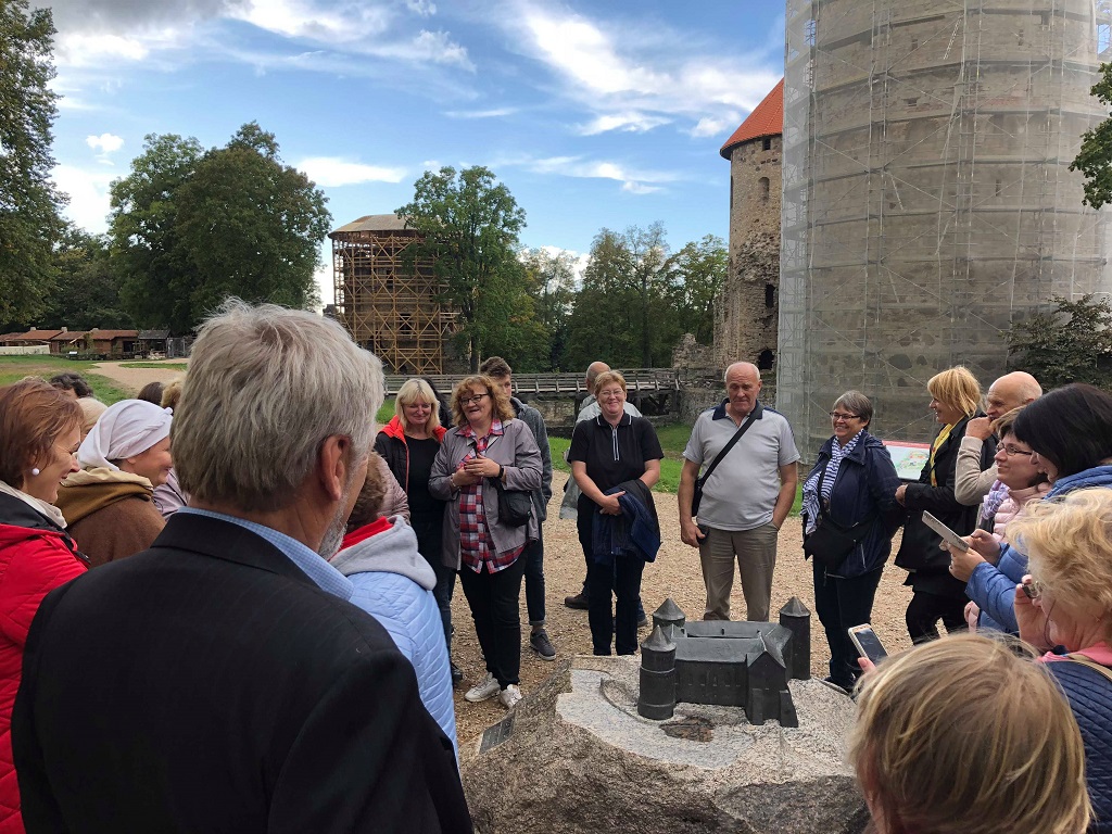 Tada pasukome į patį latviškiausią Latvijos miestą Cesį. Lydimi vietinės gidės aplankėme Cesio pilį. Apie 1214 metais kalavijuočių ordino pastatyta akmeninė tvirtovė tapo svarbiu kariniu - strateginiu to meto objektu. Tai lėmė patogi geografinė padėtis siekiant užkariauti dabartinės Latvijos šiaurines žemes bei Estiją. Pilies kieme yra prižiūrimas sodas, kuriame laukė sodininkas, kuris papasakojo apie tai, kas ir kodėl buvo auginama to meto žmonių. Vėliau bendruomenių nariai turėjo laisvo laiko, kurio metu galėjo savarankiškai susipažinti su miesto centru, latviška architektūra. Po to pajudėjome namų link. Grįžtant kelionės dalyviai dalinosi įspūdžiais, taip pat savo patirtimi įgyvendinant projektus.