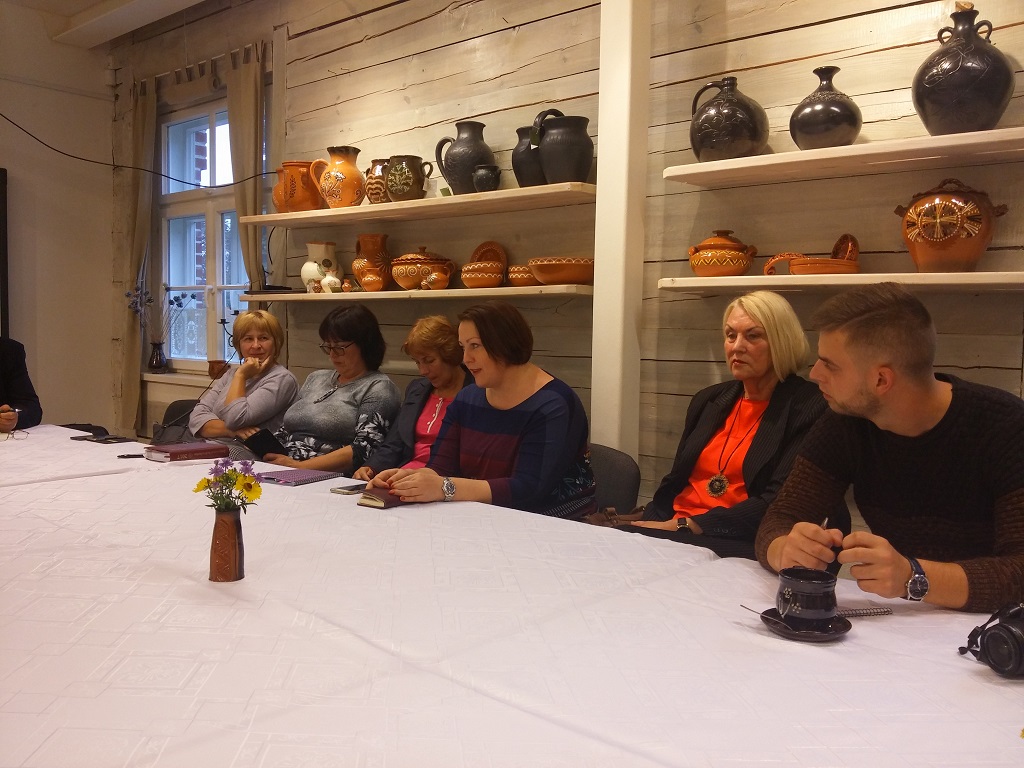 Šiaulių rajono savivaldybės etninės kultūros ir tradicinių amatų centro direktorė Birutė Poškienė susitikimo dalyvius supažindino su centro veikla, pristatė veikiančią Šiaulių rajono dailės ir technologijų mokytojų kūrybinių darbų parodos ekspoziciją.